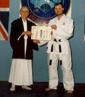 Die Gelegenheit dieses Seminares nützend überreichte der Repräsentant der Dai Nippon Butoku Kai, Wolfgang Wimmer, die Beurkundung zum Godan Karatedo an Kai-Uwe Kunz, sowie zum Yondan Jiujitsu an Stefan Schwarz.